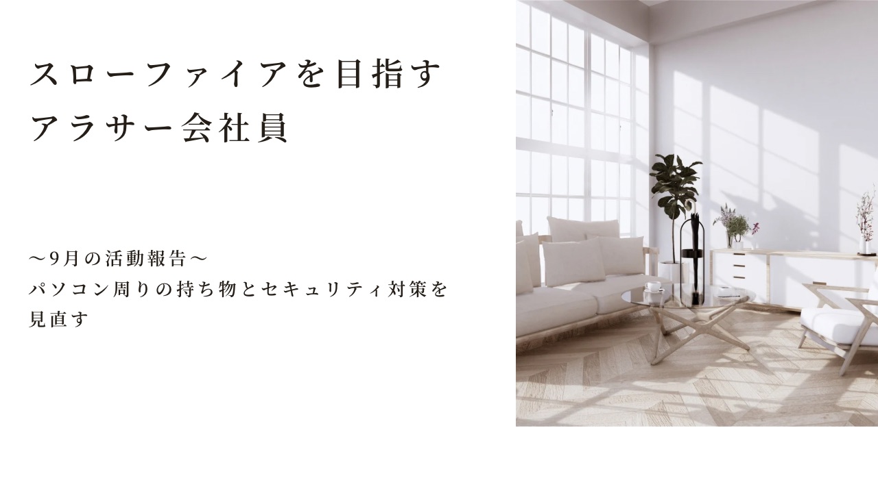 9月は「パソコン周りの持ち物とセキュリティ対策を見直す」ことをテーマに過ごしました。